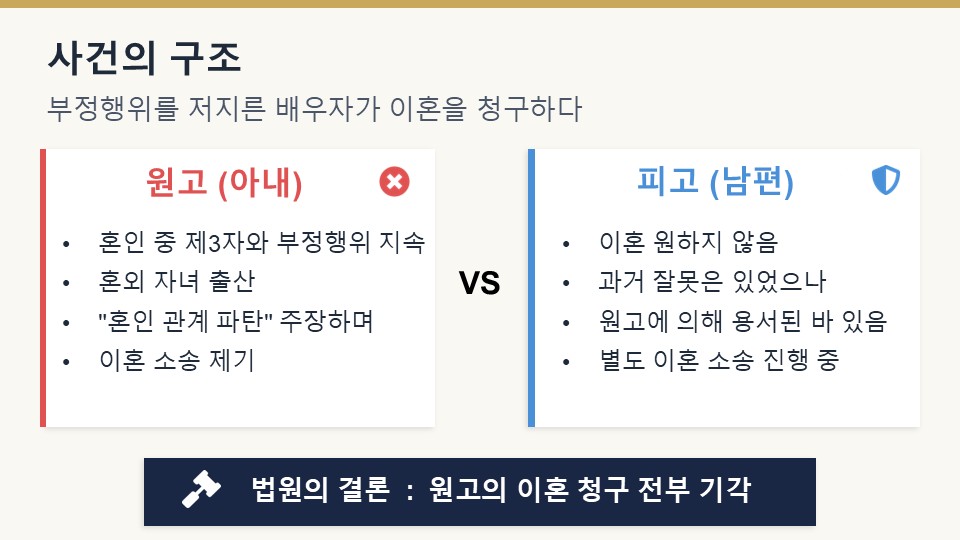 사건의 핵심: 부정행위를 저지른 배우자가 이혼을 청구하다